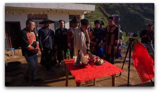 朱靖江教授認為,這樣一種主位影像,能夠“建構日趨民主化、公平化的社會對話體系,消除因經濟、政治、地緣、性別等差異而形成的身份、文化與權力鴻溝”。它不僅打破了過去依賴于技術掌握者以及文化經營的影像表述霸權,而且這樣一種在地性優勢,使得他們所呈現的文化旨趣與價值觀念都更為真實、多元,他們不僅通過呈現語言、服飾、音樂和舞蹈等符號要素,還展現了許多社會習俗以及文化事項,如通過豬膽占卜運勢、餐桌上的飲食習俗、娃娃親、打工潮、換洋火(一種以物換物的買賣行為,主要發生在解放前和上個世紀五十年代以前)、背家譜、作畢、空巢老人等,呈現出了人類學文化書寫當中的整體性,主創們力圖通過這些共同的記憶以及文化符號再現一個時代、一種生活方式。