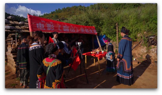 次日,劇組就舉行了一個開機儀式。在詢問主創這個日子是怎么來的時候,制片人沙馬伍颯說,電影制作過程的重要環節,比如開機儀式、走紅毯、發布等重要的日子,都要找德高望重的畢摩去算日子,從其那里算出一個良辰吉日,從而確定一個特定的日子進行開機儀式——《翻山》劇組的開機儀式時間定在“豬日”(彝族十月太陽歷)下午的六點六分。