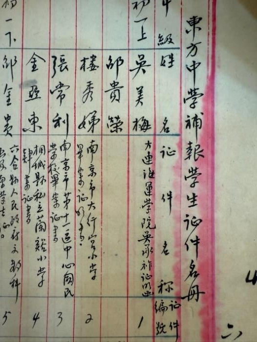 手寫《南京東方中學補報登記名冊》(1952),筆者收藏