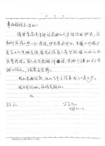 請將李南英(應是“蓉”)老師論朱湘的文章借我抄錄,或翻印或請人抄一份給我,抄寫費由我付。香港《抖擻》雜志上的朱湘年譜,您見過沒有? 希望能按上面的辦法寄給我。有人在寫朱湘評傳,朱湘年譜和關于朱湘的論文,很需要資料。