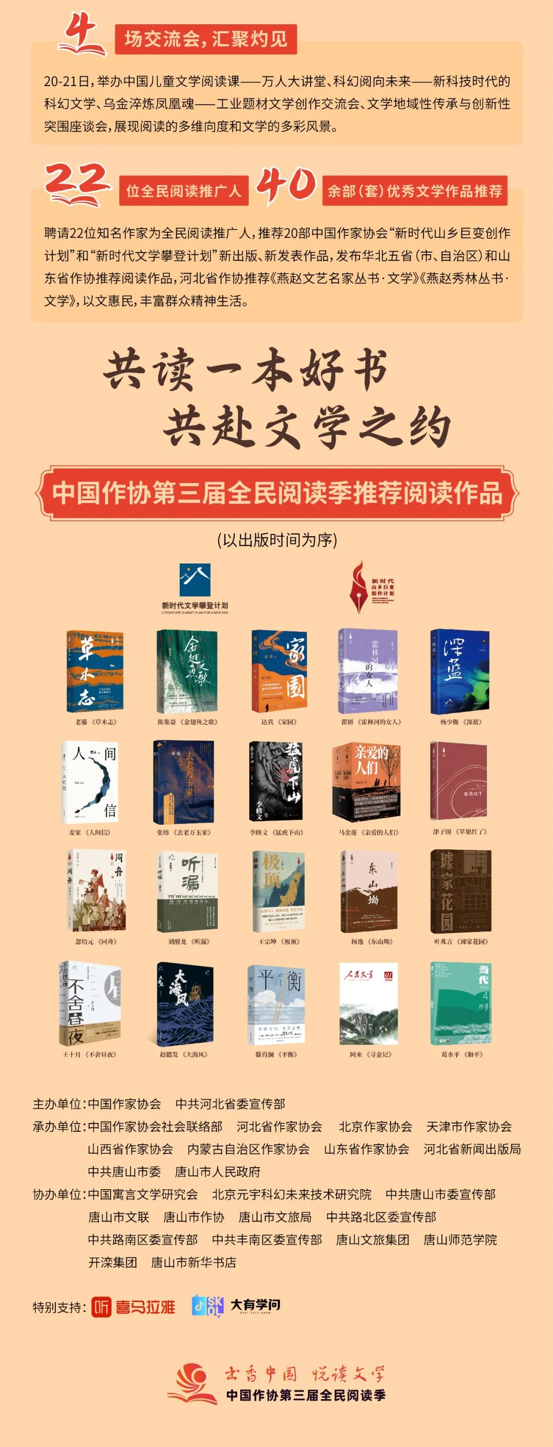 2025年世界讀書日期間,中國作協聯合華北地區北京、天津、河北、山西、內蒙古五省市區及山東省作協,共同舉辦以“文潤燕趙 閱覽山河”為主題的中國作協第三屆全民閱讀季。中國作家網將持續報道,敬請關注。