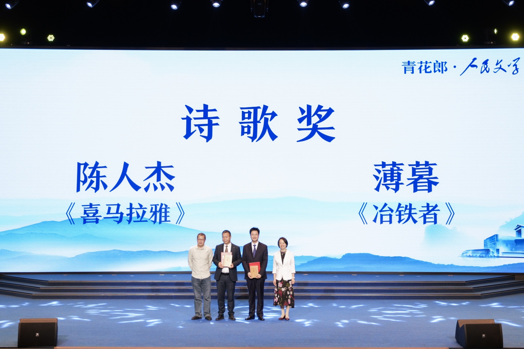 詩歌獎得主陳人杰曾經是一位援藏工作者,現已正式調入西藏工作,他的長詩《喜馬拉雅》氣勢恢宏,是一曲熔鑄西藏百年變革史與當代援藏史的恢宏史詩?!叭松绲巧?,寫詩如攀峰,13年的援藏留藏之旅,深感已將詩歌變成了堅實的生命信仰和人生的救贖”,他深感走出去才有視野格局、詩和遠方,走出去方知使命擔當。同時,他感謝評委將這份沉甸甸的獎項頒發給自己這位在雪線上丈量理想的江南游子。