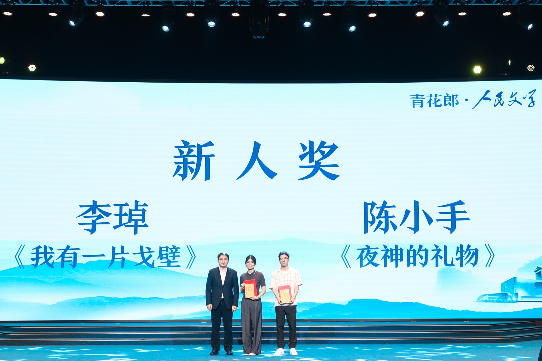 兩位新人獎得主李琸和陳小手表示,這次獲得人民文學獎,既是對他們創作成果的鼓勵,更是一個新的起點?!白鳛橐粋€作者,我非常感恩一片戈壁的故事被看見、被推薦、被肯定”,新人獎獲得者李琸來自新疆克拉瑪依,她說,“獲獎對我而言更是一次重新的出發,我會將這片戈壁繼續寫下去”。陳小手則表示,巴金先生說,把心交給讀者,“要想實現這一目標,我摸索出來的經驗是要寫自己最為熟悉的日常生活和生命體驗,要寫對這生命體驗最真實的觸動和最誠摯的思考和感悟”,在他看來,從生活中來,到生活中去,才有可能寫出有真正生命力的作品。