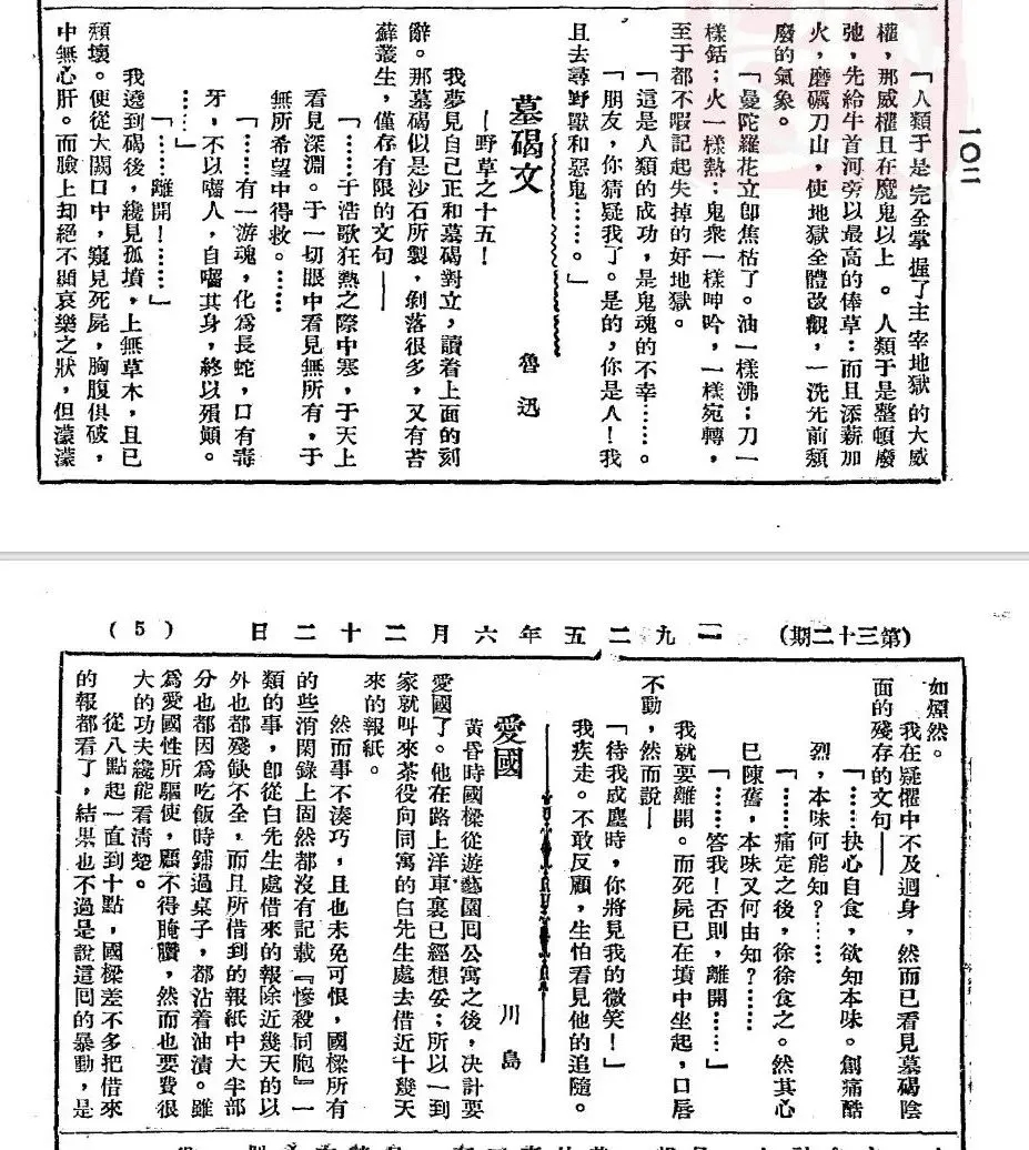 魯迅《墓碣文》,《語絲》第32期,1925年6月22日