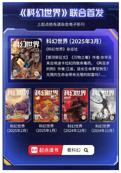閱文與《科幻世界》官宣合作:電子版將首發起點讀書