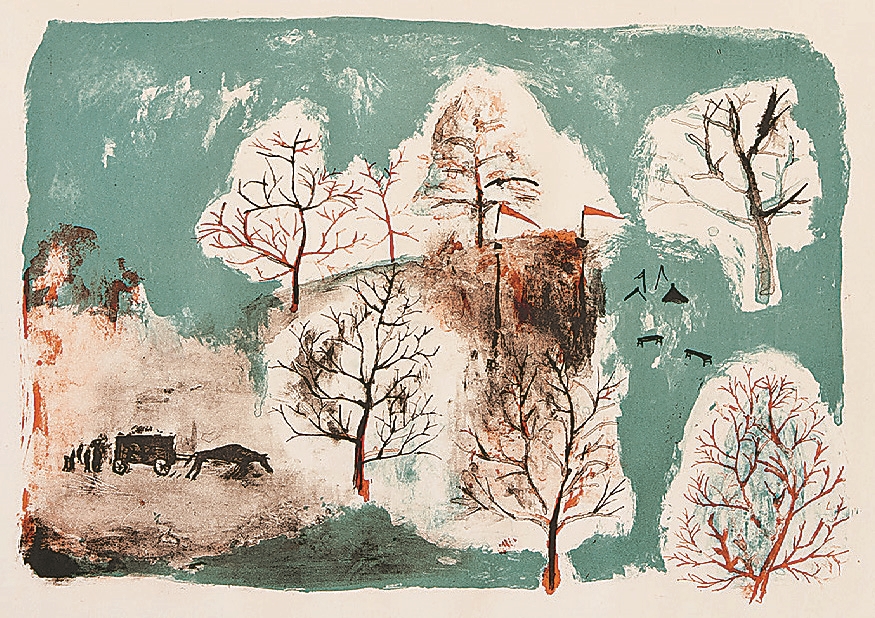 “我一連幾小時觀察平靜的水面上空氣的流動,樺樹與楓樹葉在風中蕩漾?!?0年前,15歲的趙無極來到杭州,入讀國立杭州藝專(現中國美術學院),正式開啟了自己的藝術生涯。在西湖邊的沉思引發了趙無極終生的藝術探索。西湖,不僅從此成為他縈繞終身的藝術現場,也成為他晚年時常思念與回望的故鄉。此次馬爾凱捐贈的212件趙無極作品,包括油畫作品10件、版畫174件(包括版畫插圖書15套)、瓷繪作品28件,其中油畫作品《我在杭州的家》和《無題(寺廟和墳墓)》就是趙無極在杭州任教階段的重要創作。