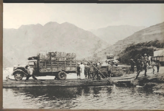 四庫全書》遷徙到重慶青木關時,竹排載文物卡車過河