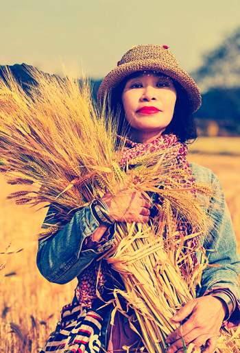 這一天又輪回到了我們行走在田野的時間,總有比我們起得更早的農人,又看見這位30多歲的女子了,她出眾的相貌,猶如山中的馬櫻花的綻放期,哪怕早春二、三月已經過去了,她仍然在綻放著。這屬于自然體系中的個例,她站在麥田中是令人矚目的,她有具體的屬于這片版圖的美感,阿細人眾所周知的傳說,如果偶然間遇見了她,你就會知道阿細人像火一樣燃燒不息的元素。