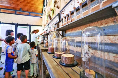 5月17日,游客參觀海南定安富文鎮九所村的種子博物館。
