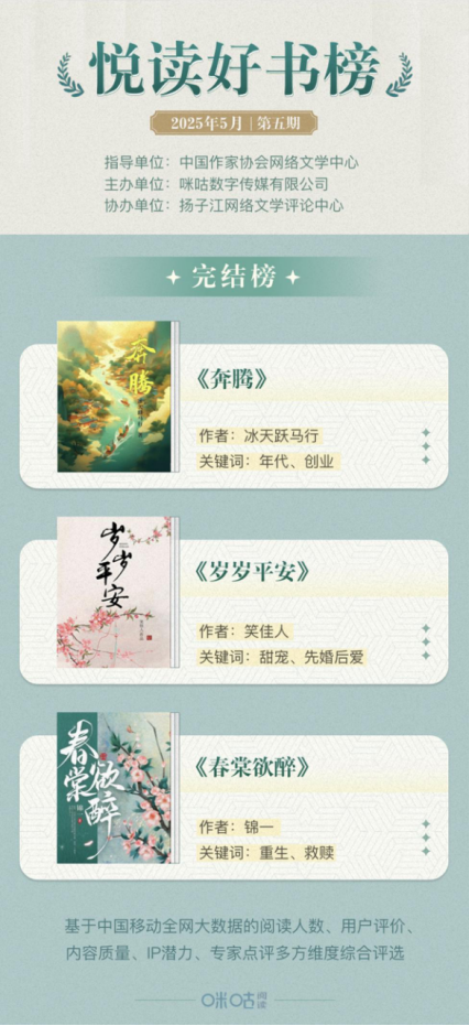 網文類型創新與時代價值同頻共振,咪咕“悅讀好書榜”第五期榜單揭曉