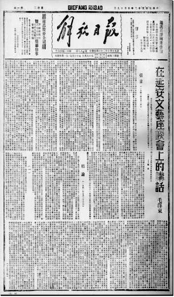 《在延安文藝座談會上的講話》首發于1943年10月19日《解放日報》
