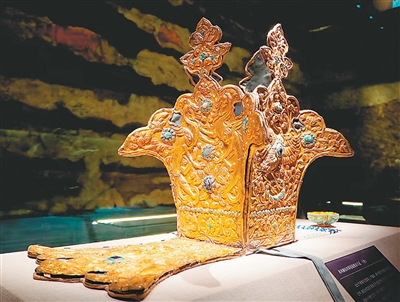 出土于青海省烏蘭縣泉溝一號墓的王冠修復后重現光彩。