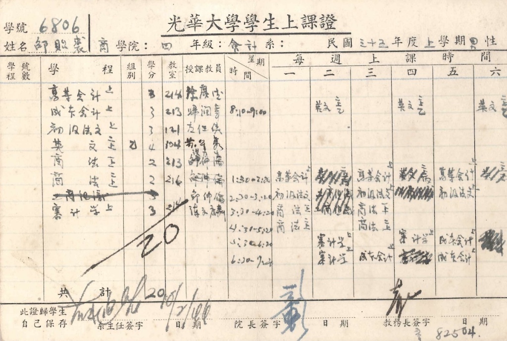 所以,我們只能說邵貽裘與光華大學再續前緣,其實是在經過一番輾轉與尋找后,邵貽裘最終確定光華大學商學院會計系才是他的理想選擇,從此他全身心投入其中,也一定能再次找回那個“學行、成績均屬優良”的光華學子。以后的情況正如我們預料的那樣,邵貽裘“學習頗有成績”,并且以學生身份擔任光華大學商學院會計系助理,在他大學畢業的1947年12月,“因學習成績優良,本校留用,擔任光華大學商學院會計系專任助教及講師職”。從1937年8月轉學到光華大學附中初二年級,到1947年底成為光華大學商學院講師,邵貽裘用十年時間完成了由光華學子到光華教師的身份蛻變,也從一位懵懂無知的少年變成了一名風華正茂的大學講師。