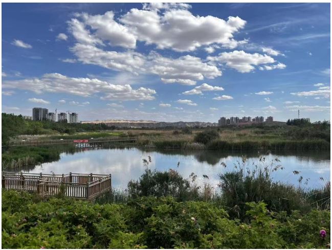 記者拍攝的蘭州新區秦王川國家濕地公園
