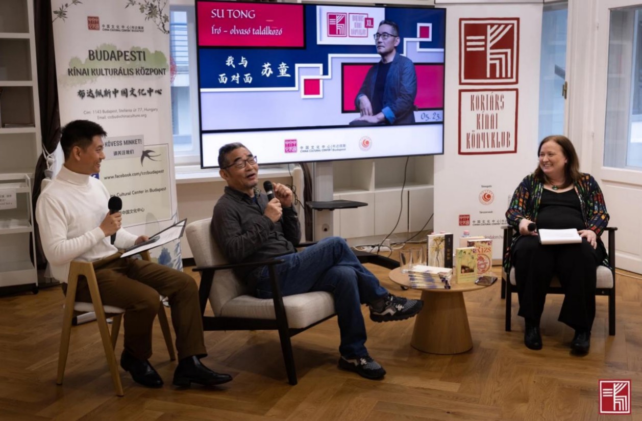 近日,在中國作協外聯部指導下,匈牙利中國文學讀者俱樂部與布達佩斯中國文化中心在布達佩斯共同舉辦了多場蘇童讀者見面會。著名作家、茅盾文學獎得主蘇童來到匈牙利,與當地讀者面對面交流,受到熱烈歡迎?;顒佑尚僦杏押脜f會(MKBT)、匈牙利PRA公關公司、匈牙利《新導報》等協辦,由匈牙利中國文學讀者俱樂部負責人、資深漢學家、文學翻譯家宗博莉·克拉拉(Zombory Klára)主持。