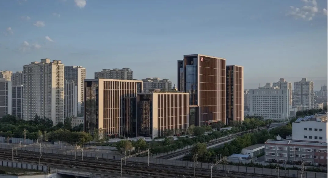 中國國際出版交流中心,立面取意“金書玉匣”,左起第二棟建筑即為人文社新大樓