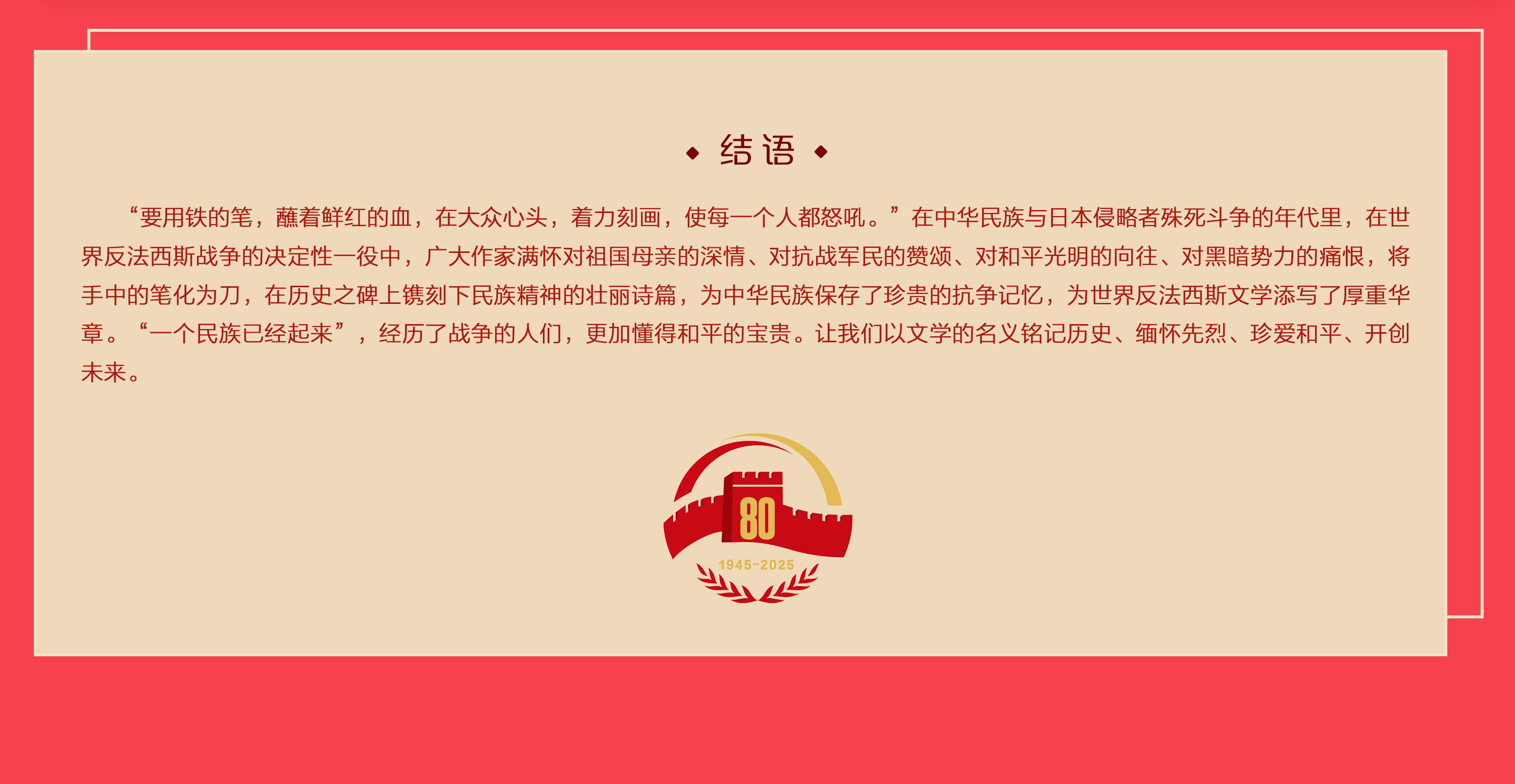民族精神的壯麗篇章——紀念中國人民抗日戰爭勝利80周年文學成就展