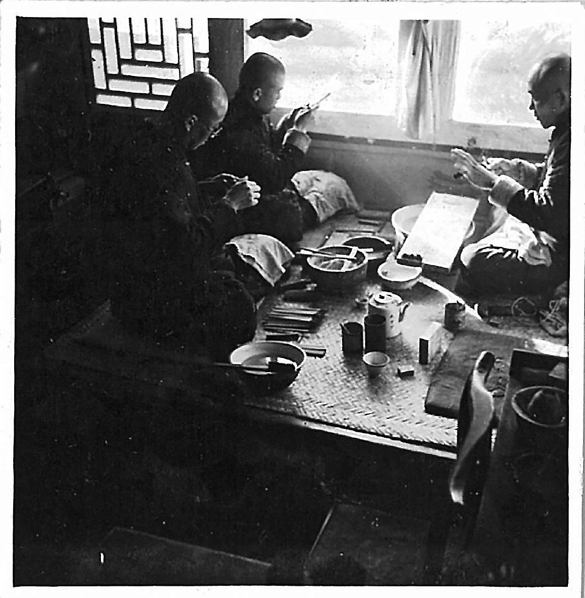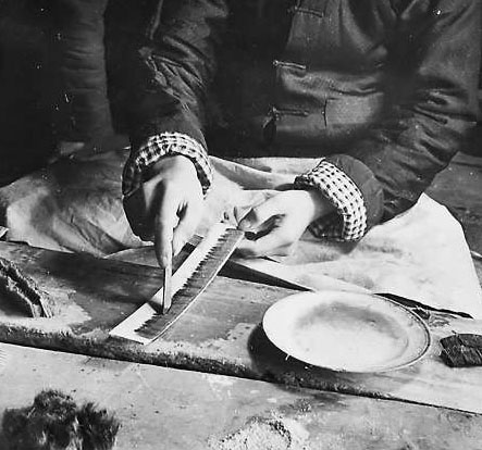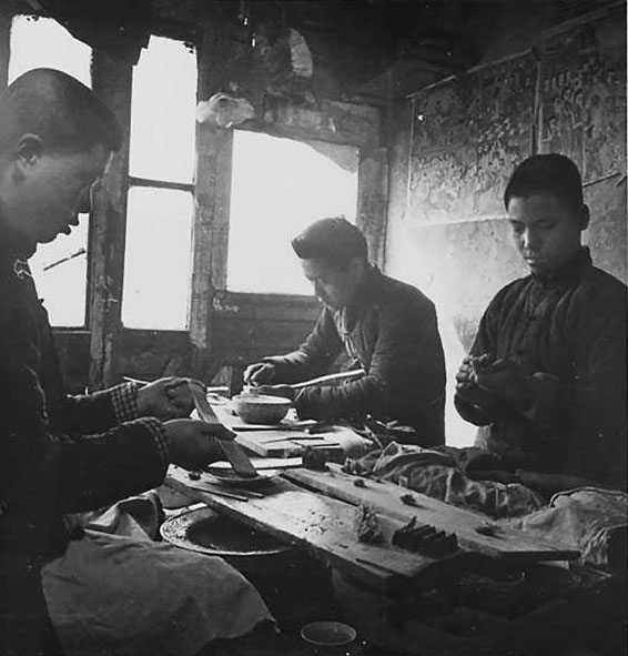 和平門外胡文昇筆莊的師傅們在制作毛筆。