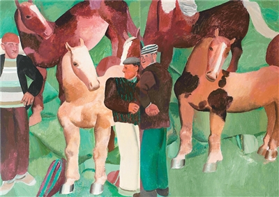 在此以外,來自新疆的藝術家趙培智,在描繪生養自己土地上的人們時,展現出了更自由舒展的意象。他注重捕捉人們日常生活的瞬間,通過提煉和歸納物象造型,形成了濃郁的藝術語言和情感氣息。諸如在畫作《縱情之馬》中,一種介于現實與夢境間的情緒呼之欲出。其繪畫使表現新疆地域的人物形象不再囿于普通意義上的民族學范疇,而是展開了更具國際化和現代性視覺張力的新維度。通過趙培智的藝術,可以看到20世紀以來,從由外及內畫新疆,到新疆人自己畫自己的新變。