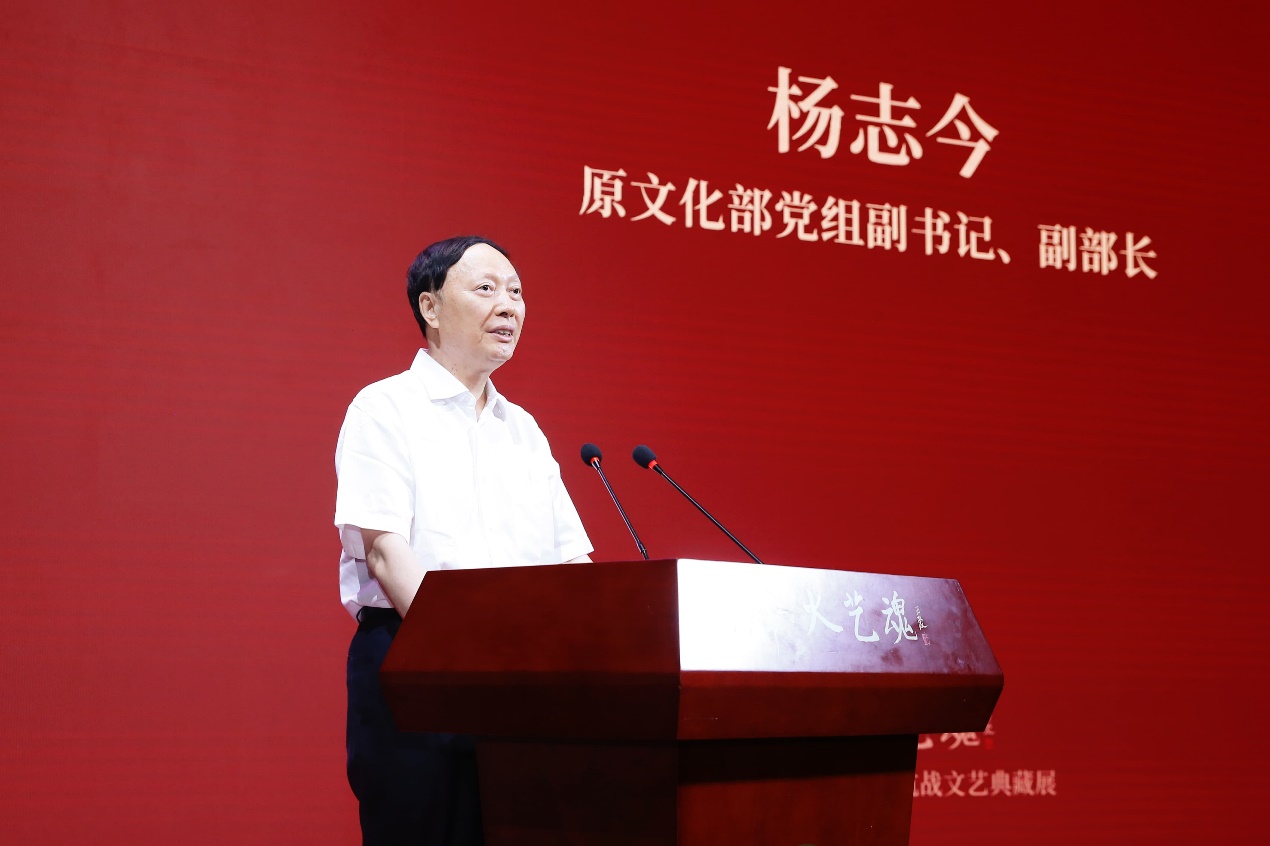 為紀念中國人民抗日戰爭暨世界反法西斯戰爭勝利80周年,由中國藝術研究院主辦、中國藝術研究院藝術與文獻館承辦的“烽火藝魂——中國藝術研究院抗戰文藝典藏展”于2025年7月16日在中國藝術研究院開幕。原文化部黨組副書記、副部長楊志今出席開幕式并宣布展覽開幕。