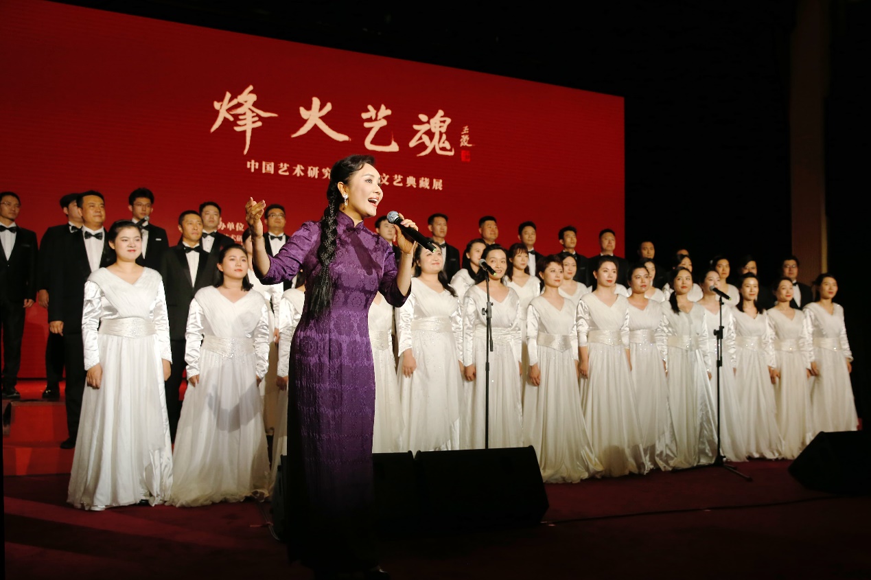 開幕式上,由中國藝術研究院職工、研究生院教師和碩博士生,以及中央歌劇院合唱團成員共同組成的國藝合唱團,以飽滿的熱情,深情演繹了《八路軍進行曲》《南泥灣》《保衛黃河》三首經典抗戰歌曲,以情緒激昂、氣勢磅礴的歌聲,紀念抗日戰爭的偉大勝利,贊頌偉大的抗戰精神。