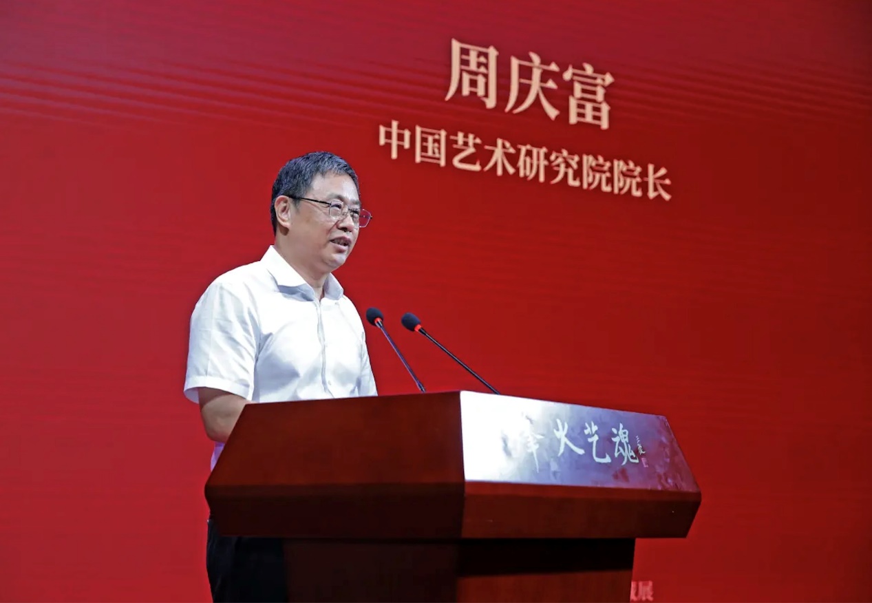 中國藝術研究院院長周慶富在致辭中表示,本次展覽既是對歷史的銘記、對先烈的緬懷,更是對偉大抗戰精神的傳承與弘揚。中國藝術研究院作為我國唯一的國家級綜合性學術機構,自創建伊始便匯聚了王曼碩、馬彥祥、王朝聞、張庚、葛一虹、朱丹、蘇一平、江有生、賀敬之、馬可等一大批具有延安魯藝背景的藝術家和學者。同時,中國藝術研究院在傳承延安魯藝精神的基礎上,持續積累并整理了一批極具歷史價值的紅色藝術文獻與作品,它們不僅記錄了歷史的烽火歲月,更生動地展現了藝術家們以文藝為武器的戰斗精神、以愛國主義為核心的民族精神和全心全意為人民服務的奮斗精神。