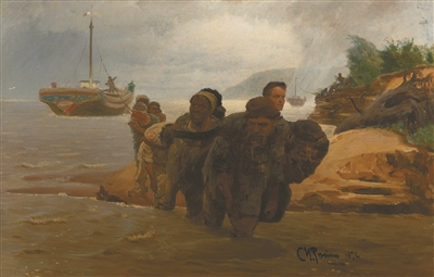 其實,列賓真正的杰作已在畢業前一年開始創作,那就是《伏爾加河上的纖夫》。創作的緣起是1868年列賓在圣彼得堡涅瓦河畔的一次散步,他第一次見到了纖夫,便萌生了創作這一主題的想法。五年后,也就是1873年,他完成了這幅杰作。