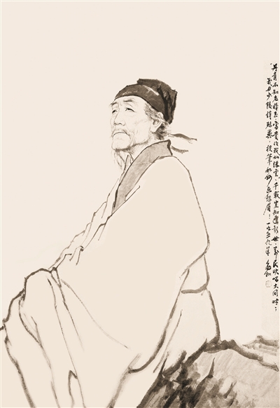 “往還古今”單元選取了蔣兆和大量以歷史人物為題材創作的作品。其中包括眾所周知的《杜甫》及其畫稿、《太白沉思》《李清照像》《悠然見南山》《司馬遷》等代表作。此類人物創作因缺乏明確的形象依據,畫家只能以心為炬,借古人史傳與作品去想象其風采,感受其心境,也因此更能體現蔣兆和筆墨意趣的抒發、情感心緒的表達。如在《杜甫》這件作品中,我們不僅能夠看到蔣兆和在上世紀50年代為將白描、骨法用筆等中國傳統筆墨技法融入人物畫造型而作出的卓絕努力,同時也能通過人物塑造的精彩處體會到他“為民寫真”的創作思路與杜甫憂國憂民的現實主義精神之間的情感呼應。