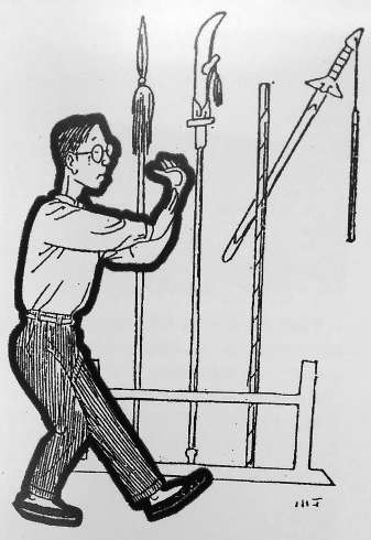 《老舍練拳》 丁聰繪