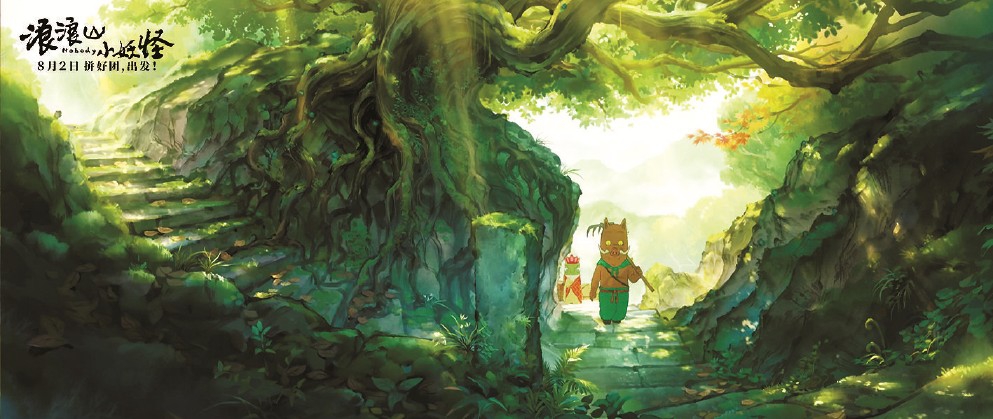 說《浪浪山小妖怪》“貌不驚人”,是因為如今在大銀幕上放映類似的二維動畫片并不多見——它顯然并不是那種視覺屬性特別銳利的作品。景物是水墨的,人物是國漫的,整體畫風在兩者的交融與彌合上下了不少功夫,走的是一條在古與今、中與西、風格化與大眾化之間的平衡之道。