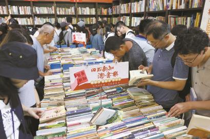 淘書 讀者在上海書展上淘舊書。