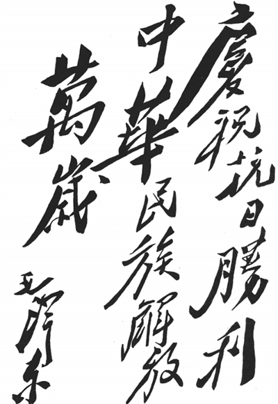 毛澤東為重慶《新華日報》題詞“慶??谷談倮?,中華民族解放萬歲!”