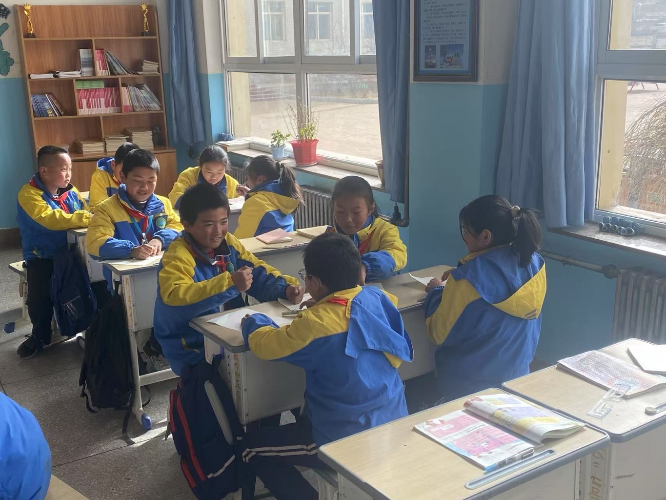 學校圖書室擁有上萬冊藏書,但左昡還是覺察到書籍在另一層面的“匱乏”——書架上大都是名人傳記、教輔材料,難以吸引孩子,且每學期僅對每個班級開放一次。2025年寒假期間,左昡聯系了春風文藝出版社、接力出版社和新蕾出版社,再加上她所在的作家出版社,成功為學校募集到近600本真正優秀的兒童文學圖書。新學期伊始,這些書在左昡抵達之前,抵達了學校。等她開始新學期的課程時,她欣喜地發現,孩子們的課桌上,已經放上了從圖書室里借來的新書。每個孩子的課桌上都有一本。