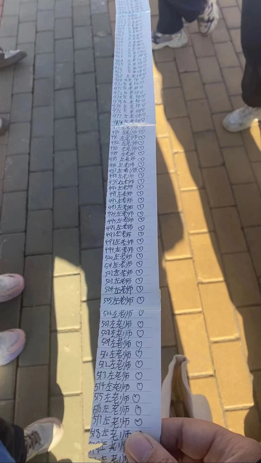 這一年里,左昡收到了太多來自孩子們的禮物。第一學期,孩子們送她手寫的520遍左老師??,第二學期,他們送她的同樣的紙卷上,手寫的這份心意變成了1314遍。