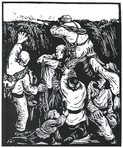 當敵人搜山的時候(黑白木刻)彥 涵作
