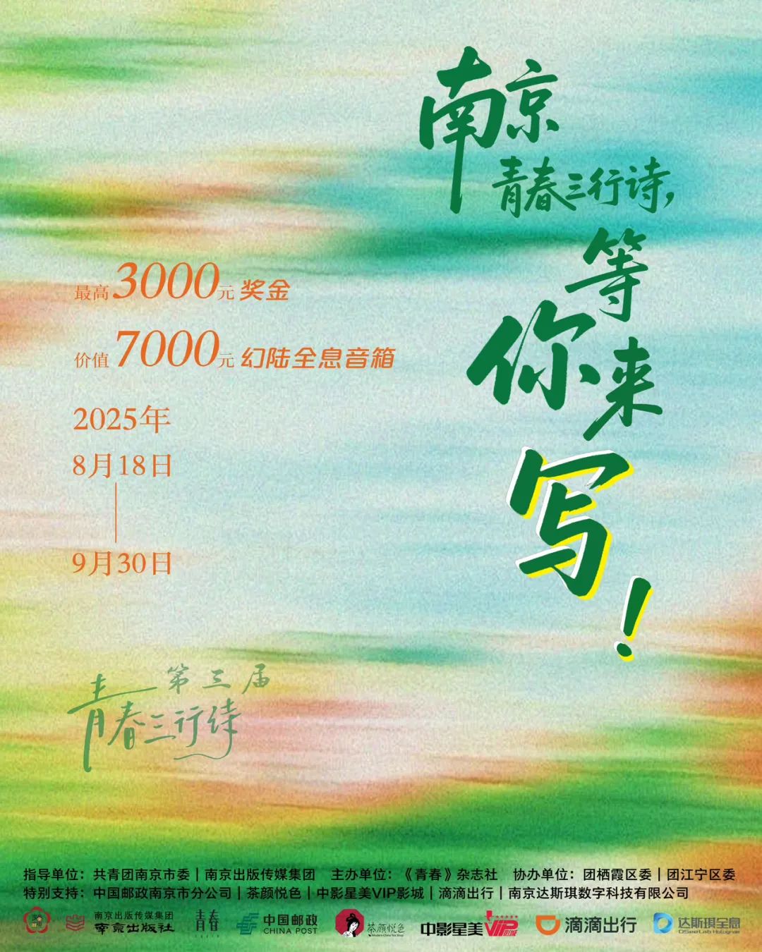 我們邀請所有人,加入第三屆青春三行詩的創作大賽中,圍繞主題“我在南京的日子”書寫獨屬于你和南京的青春三行詩。