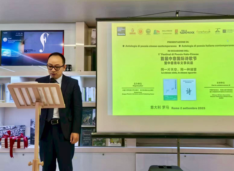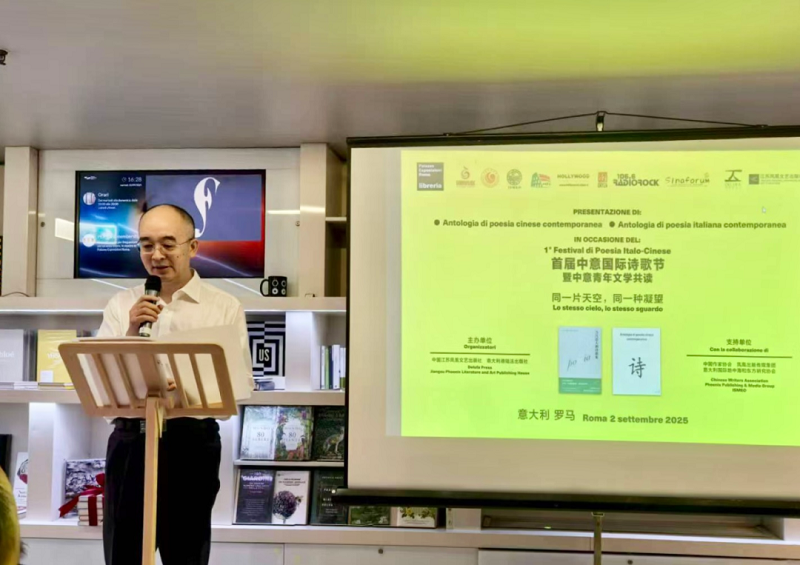 9月2日下午,首屆中意國際詩歌節暨國際青年文學共讀活動在意大利國家博物館書店正式開幕。本次活動由中國作家協會、鳳凰出版傳媒集團、意大利國際地中海和東方研究協會支持,江蘇鳳凰文藝出版社(中國)與德陸法出版社(意大利)共同主辦,旨在搭建高水平的詩歌交流平臺,深化中意文化藝術的互鑒與交流,推動兩國文學以及出版領域的友好合作。