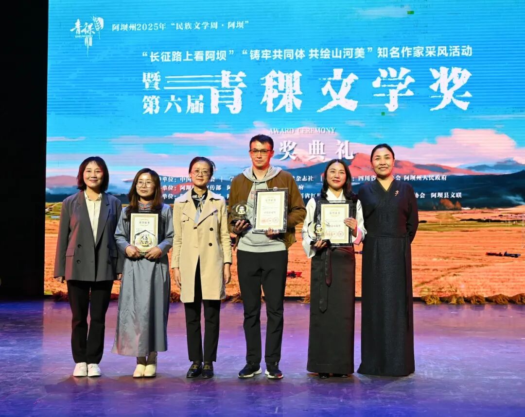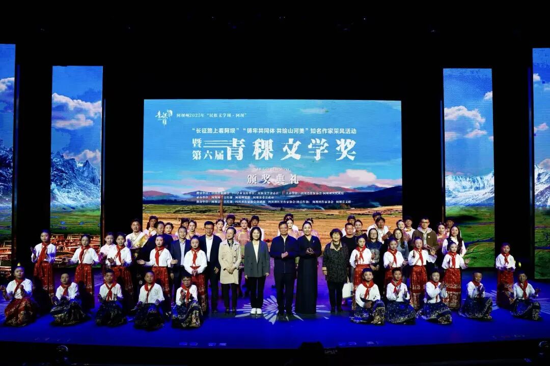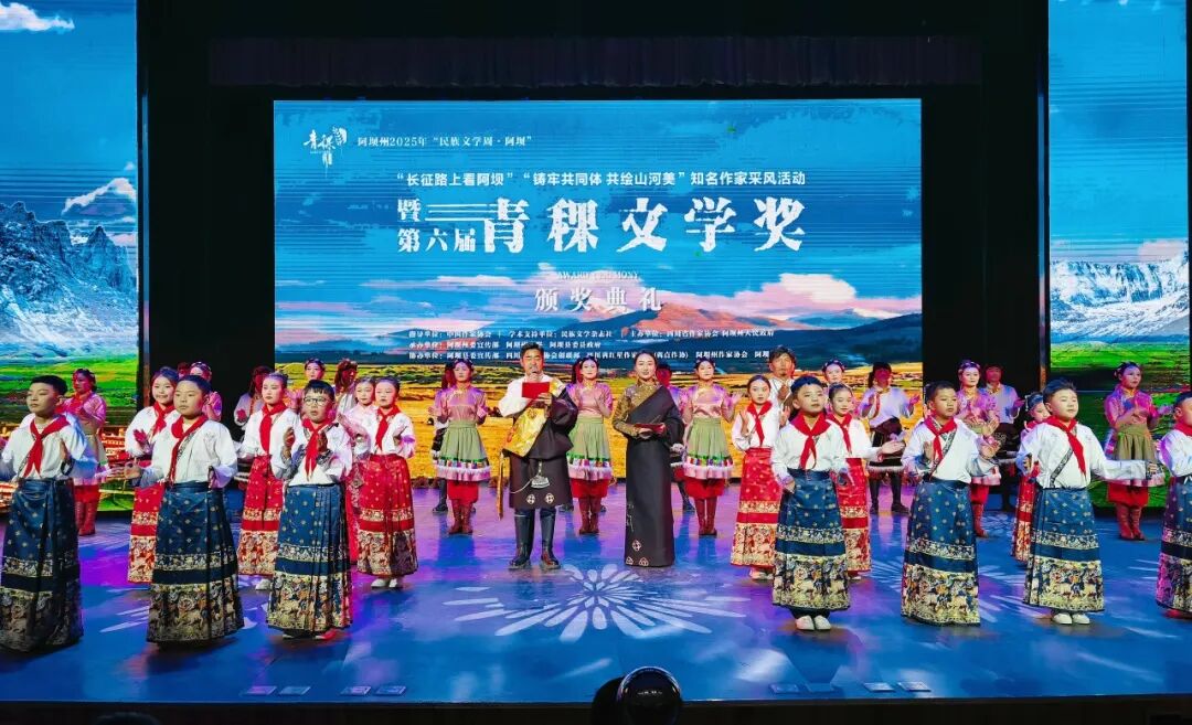 2025年“民族文學周·阿壩”活動期間,由民族文學雜志社提供學術支持,四川省作家協會、四川阿壩州人民政府主辦,阿壩州委宣傳部、阿壩州文聯、阿壩縣委、縣政府承辦,阿壩縣委宣傳部、四川省作家協會創聯部、四川省紅星作家協會(省直作協)、阿壩州作家協會、阿壩縣文聯協辦的第六屆青稞文學獎頒獎典禮于9月8日晚在四川阿壩州阿壩縣成功舉辦。中國作協黨組成員、書記處書記李一鳴,《民族文學》主編陳亞軍、副主編朱鋼,四川省人大常委會委員、省人大監察和司法委副主任委員、中國作協南亞國際文學交流中心執行主任、四川省作協副主席侯志明,四川省作協黨組副書記魯娟,中共阿壩州委常委、宣傳部部長依當措,阿壩州委常委、阿壩縣委書記馮崢勇,阿壩州政協副主席何曉兵,阿壩州文聯黨組書記、主席阿郎,阿壩縣委副書記陳波,阿壩縣委常委、副縣長唐建勇,王懷林、范穩、馬麗華、魯若迪基、尼瑪潘多、譚五昌、衣向東、巴久烏嘎、王麗一、楊國鋒等知名作家、第六屆青稞文學獎獲獎作家,以及阿壩州作家代表、阿壩縣機關干部、學生群眾代表等齊聚一堂,共同見證這一文學盛會。