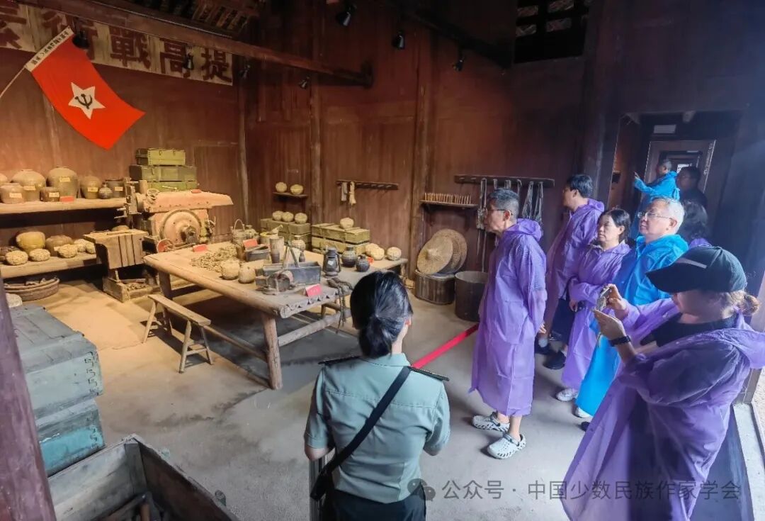 “睡到半夜過,門口在過兵......”歌聲在展廳里回響,作家們安靜肅立,淚光閃閃,心緒隨著歌聲飛揚,仿佛又回到那段跌宕起伏、波瀾壯闊的紅色歲月。永順縣塔臥鎮“湘鄂川黔革命根據地”,是中國共產黨在長江南岸建立的最后一塊紅色革命根據地,紅二、六軍團無數英雄兒女在這里舍生取義。采風團一行觀看場館文物資料、聽取講解員講解、參觀革命舊址,講解員的歌聲深情寧靜而熾烈,作家們無不為先輩們拋頭顱灑熱血的悲壯而眼含熱淚。