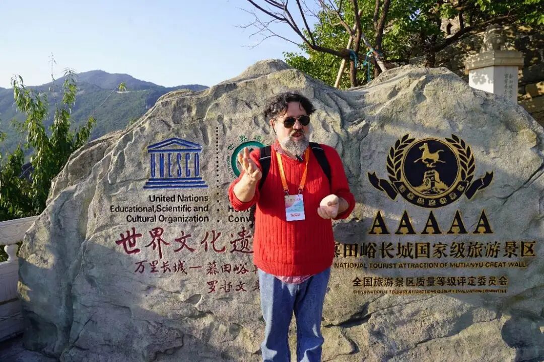 “我愛長城!”智利詩人哈維爾·貝洛用漢語高呼。尹超 攝。