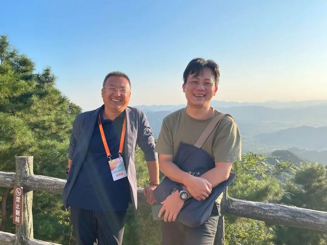長城的背后,是一望無際的燕山山脈。中國詩人孔令劍、林森合影。尹超 攝。