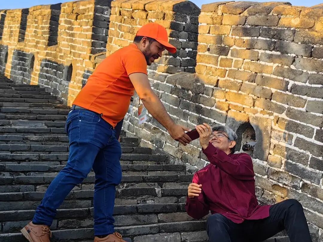 嘿兄弟,看看我拍得怎么樣?巴拿馬詩人哈維爾·阿爾瓦拉多與墨西哥詩人羅伯托·阿庫尼亞在長城上。陳澤宇 攝。