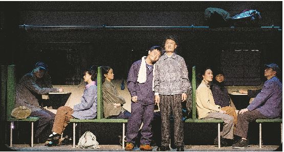 在舞臺上濃縮時光、提煉時代精神是一件困難卻又必須要完成好的創作任務。如何從娓娓道來的長篇敘事中,提煉出舞臺故事的精髓?在對《南來北往》的改編中,我們選取列車與小院作為核心敘事空間,由劇中人作為講述者,還原時光鏈條中人物命運的關鍵段落,突出不同時空人物的在場性。舞臺上的每一個人物都在共同經歷著時光的洗滌,推動講述者和傾聽者之間的關系變化。在人物命運背后,時代的發展也恰如列車不斷前行,一段段記憶中的情感奔涌,時而靜水深流,時而浪濤翻滾。而如何寫好群像中的師徒情、父子情,以及始終閃耀的理想之光和時代浪潮中的人生百味,則是我們要著力思考的部分。
