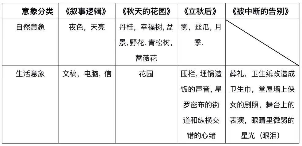 意象派詩歌的核心理論主張是“以精準、清晰的意象傳遞情感與思想”,并明確提出“意象即意義”的創作理念。時曉詩歌中的意象系統同樣超越了淺表的實物描寫層面,而是成為承載豐富情感內涵與深刻人生況味的意義載體,其意象可分為“自然意象”與“生活意象”兩大類,不同類型的意象在四首詩作中呈現出差異化的分布與功能: