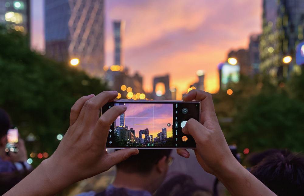 2024年5月14日,北京,市民拍攝日落