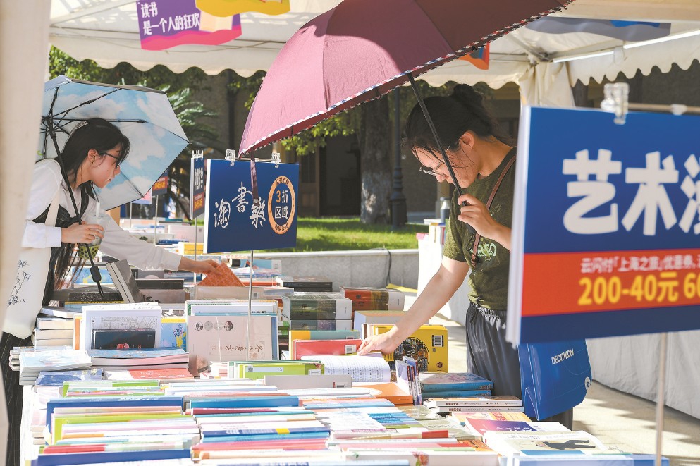 “每次‘淘書樂’舊書市集扎根所在地文化基因,都會策劃相應的小型展覽或推出相關展陳,希望市集與地標擦出更多有意思的火花?!鄙虾D書有限公司副總經理程犁告訴記者,“淘書樂”舊書市集不斷迭代升級,力求提升讀者體驗和服務水平。無論是休閑區域的“吃咖啡”,還是以校區建筑群為元素定制的藏書票和套色紀念圖章,都是因地制宜的書香禮物,讓逛市集的人們更有獲得感,向讀者傳遞“舊書流通、閱讀循環、人際交流、文化傳播”的理念,也告訴更多人——閱讀可以很時尚,歷史可以很親切,古老校園可以很“好玩”。