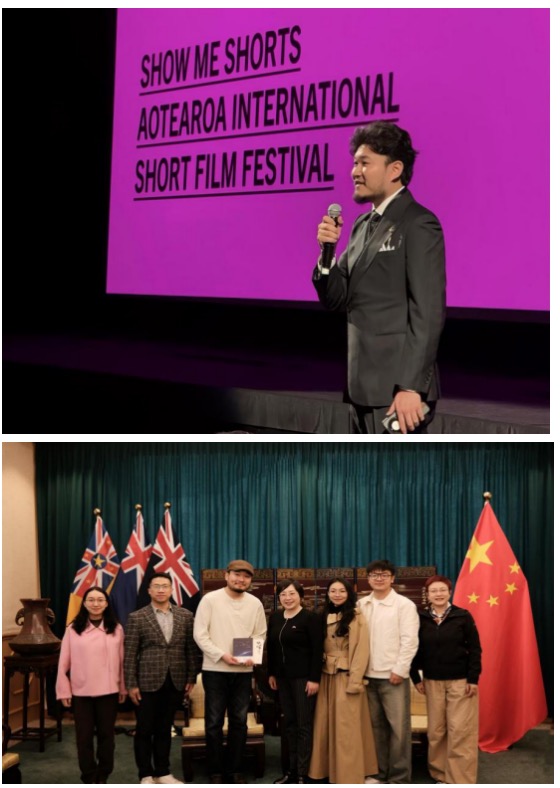 10月7日,在第20屆新西蘭秀美國際短片電影節上,中國首次擔任榮譽主賓國?!掇D人工》作為開幕夜首映電影在奧克蘭一座有著140多年歷史的古典劇場The Civic正式放映。來自不同國家的700多位觀眾匯聚一堂,在不斷的歡笑聲中欣賞了這部充滿文學意味的“有趣的電影”。奧克蘭中國文化中心負責人王建文在致辭中表示:“短片藝術是影像語言中最具張力與實驗精神的形式。希望通過這樣的國際平臺,讓世界更好地了解當代中國青年人的思考與表達,也促進中新兩國的文化互鑒與情感共鳴?!痹谟澈蠼涣髦?,不斷有熱心觀眾圍著劉漢霖,表達對這部電影反映的社會問題的認同感,期待讀到更多他的文學作品。