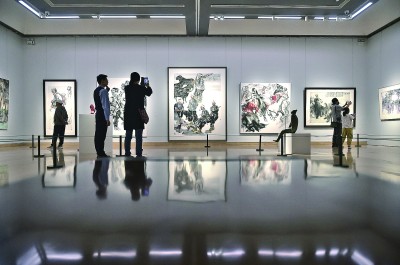 觀眾在中國美術館參觀展出作品。新華社記者 魯鵬攝