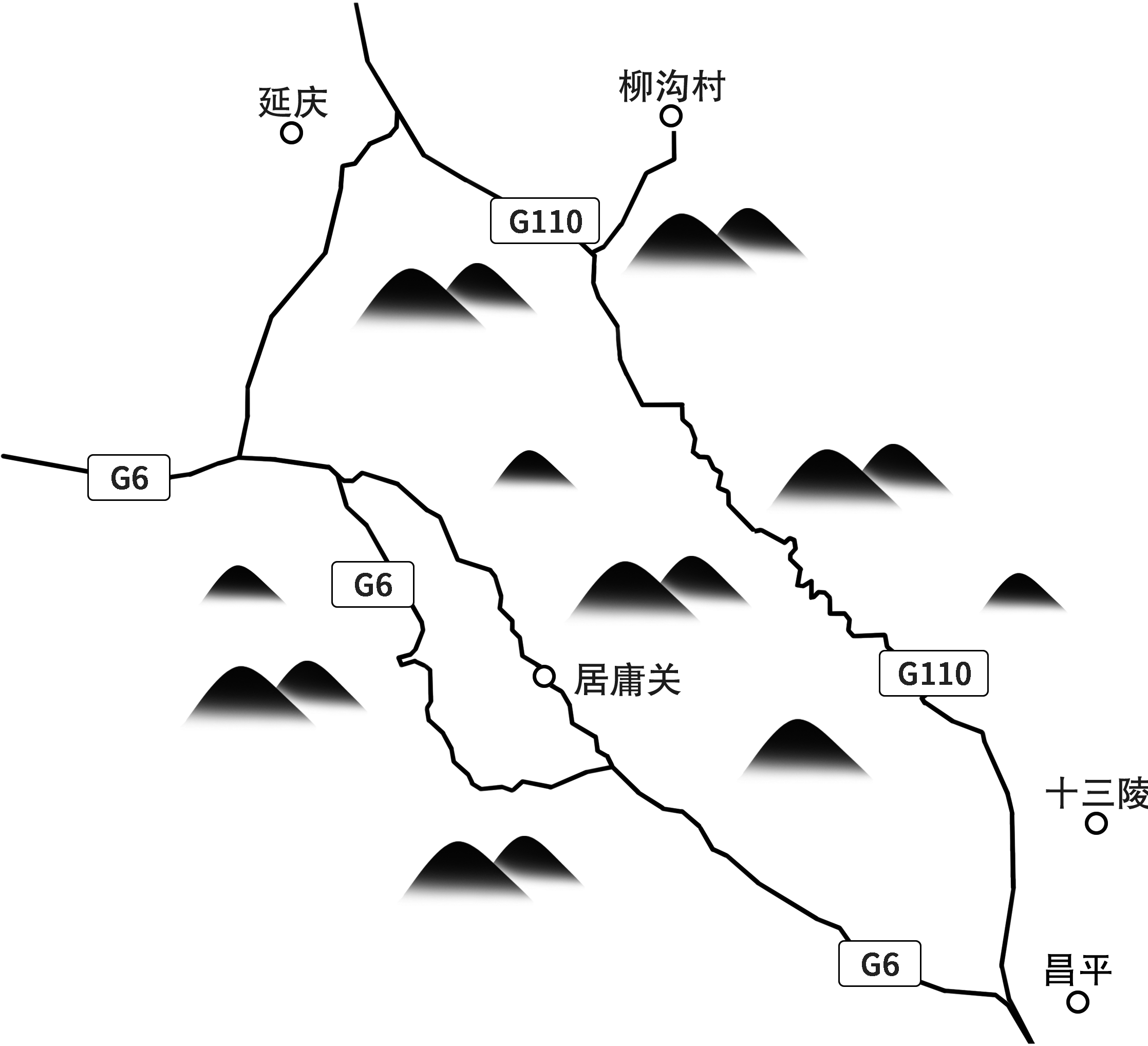 只有通過地圖,或者親自駛過G 110國道,才能理解“寇自柳溝抵居庸關。柳溝天塹,百人可守,竟不設備;總兵唐通、太監杜之秩迎降”這句話的真正含義。