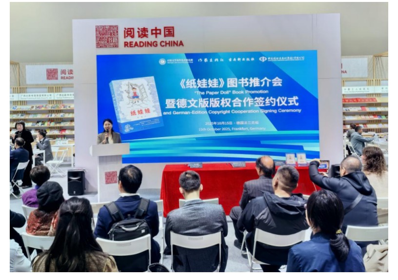 在推介會現場,與會嘉賓圍繞《紙娃娃》的文學價值與教育意義展開深入交流。中圖公司副總經理雷建華指出,《紙娃娃》的跨國傳播是將歷史記憶轉化為跨越國界的人性教育素材的積極嘗試;德國萊茵出版社社長朱校廷分享了在德國推廣中國故事的經驗,指出需結合當地讀者閱讀習慣進行本土化改編;旅德作家海嬈探討了文學敘事對修復歷史創傷的作用,認為《紙娃娃》通過童真視角,讓歷史變得更加真實可感;法蘭克福大學博士生艾琳娜則從學術角度分析了中國文學在德國的接受路徑?;顒悠陂g,各方還完成了德文版版權合作協議的簽署工作。
